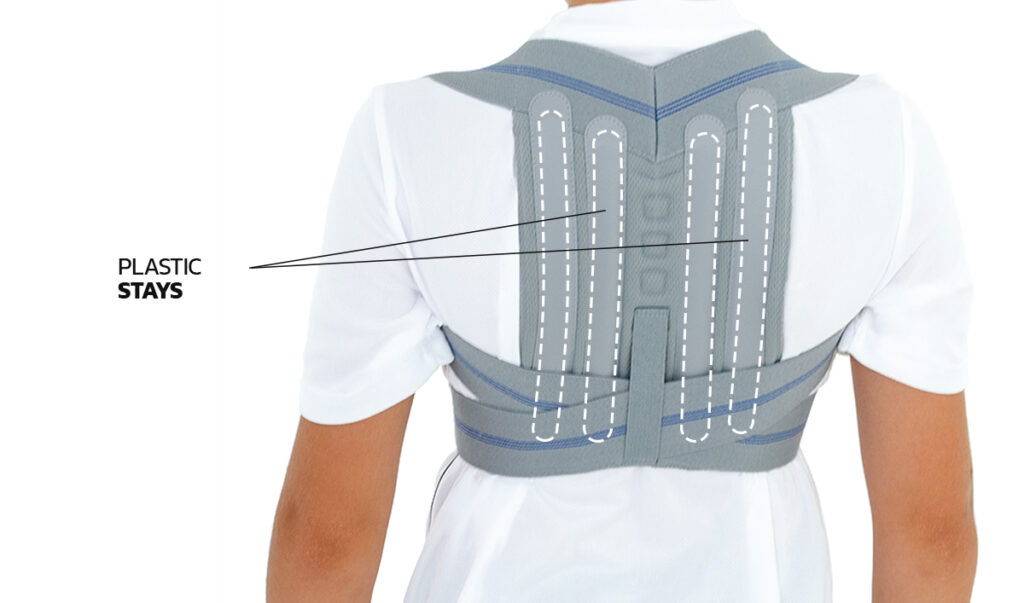 Children’s chest and shoulder brace with orthopaedic nibs helps your child achieve correct posture during daily activities.