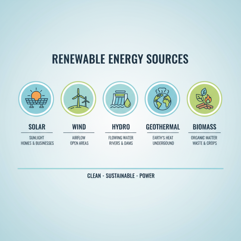 Renewable energy is a growing field, offering various options for sustainable power. Key types include solar, wind, hydro, geothermal, and biomass. Each has unique benefits and challenges. Solar energy harnesses sunlight, suitable for homes and businesses. Wind energy relies on turbines, often located in open areas. Hydro energy uses flowing water, typically in rivers or dams.