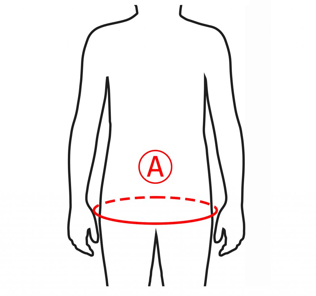 | Rozmiar | Obwód bioder (A) | Odpowiedni dla wieku | Sposób dokonywania pomiaru |