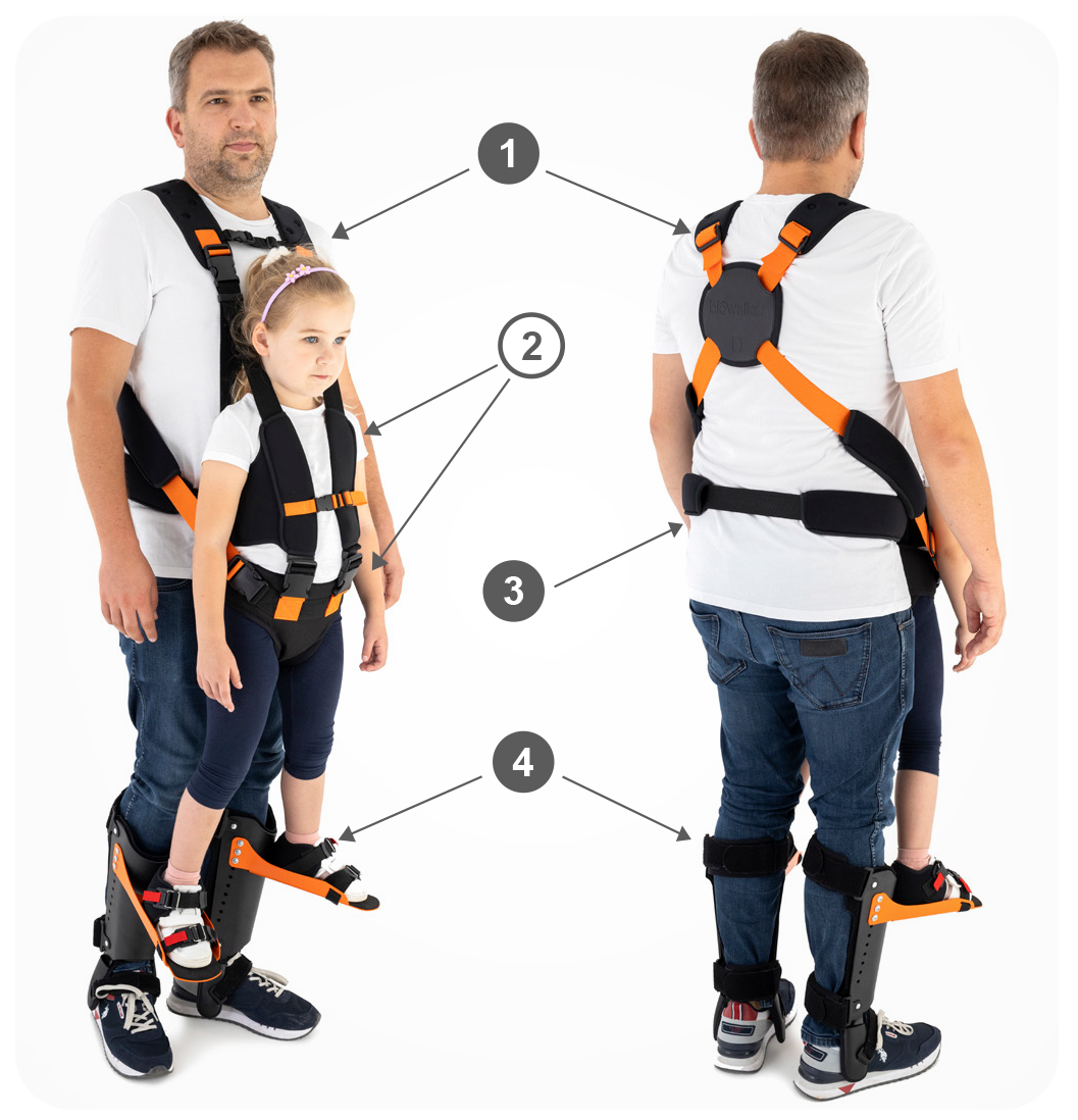 - łusek piszczelowych dla Opiekuna wraz ze stopkami do współbieżnego chodu dla Pacjenta