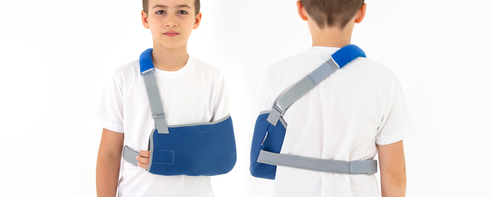 Детская перевязь AM-SOB-03 отлично обездвиживает верхнюю конечность после травмы. Это отличное решение при использовании гипсовой повязки и для стабилизации самой конечности. Благодаря анатомической форме повязка удерживает локоть согнутым под углом 90 градусов, что обеспечивает функциональное терапевтическое положение во время выздоровления.