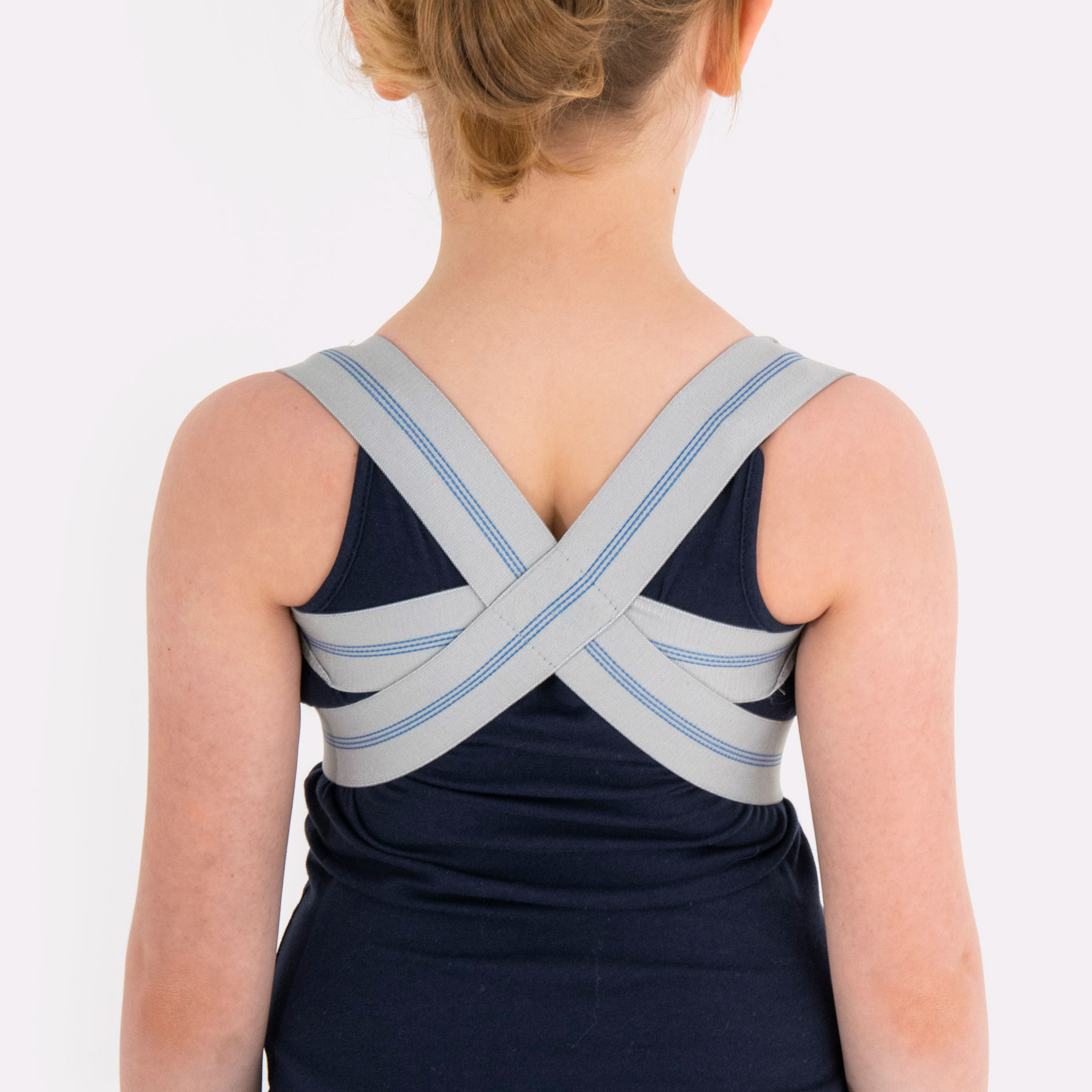 Наш ортез AM-PES-03 был сконструирован таким образом, чтобы максимально улучшить свойства материала и обеспечить мягкое, но прочное растяжение резины. Резина стягивает лопатки в позвоночнике, позволяет груди двигаться вперед и выпрямляет грудной отдел позвоночника. Поддерживая правильную осанку спины, также немного приподнимается лордоз шейного отдела позвоночника, благодаря чему ребенок держит голову в правильном нейтральном положении.