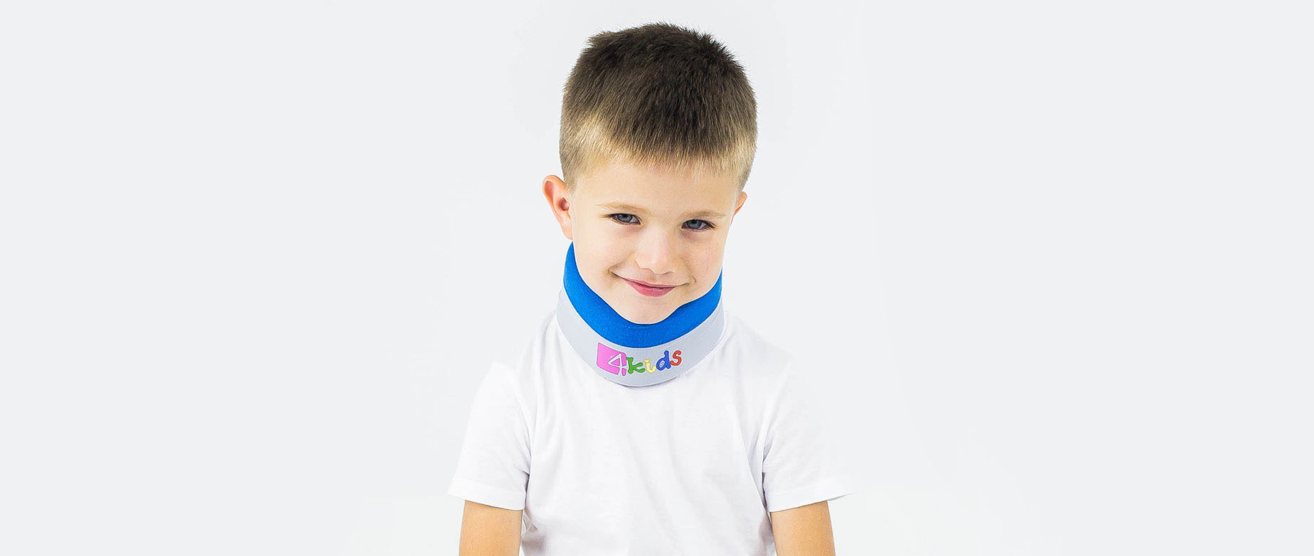 Его внутренняя часть изготовлена из нежной пены, на которую свободно опираются кости нижней челюсти, обеспечивая облегчение и стабилизацию мышц позвоночника и шеи. Снаружи воротник покрыт материалом двух типов. Серая лайкра имеет гладкую, немнущуюся структуру. Благодаря этому отсутствуют утолщения материала, которые могли бы вызвать отпечатки на коже и дискомфорт ребенка. Верхняя часть воротника EB-KM из хлопчатобумажной ткани синего цвета покрывает весь подбородок, обеспечивая хорошую вентиляцию кожи. Этот материал очень нежный и бархатистый на ощупь, благодаря чему ребенок чувствует себя комфортно при использовании нашего изделия.