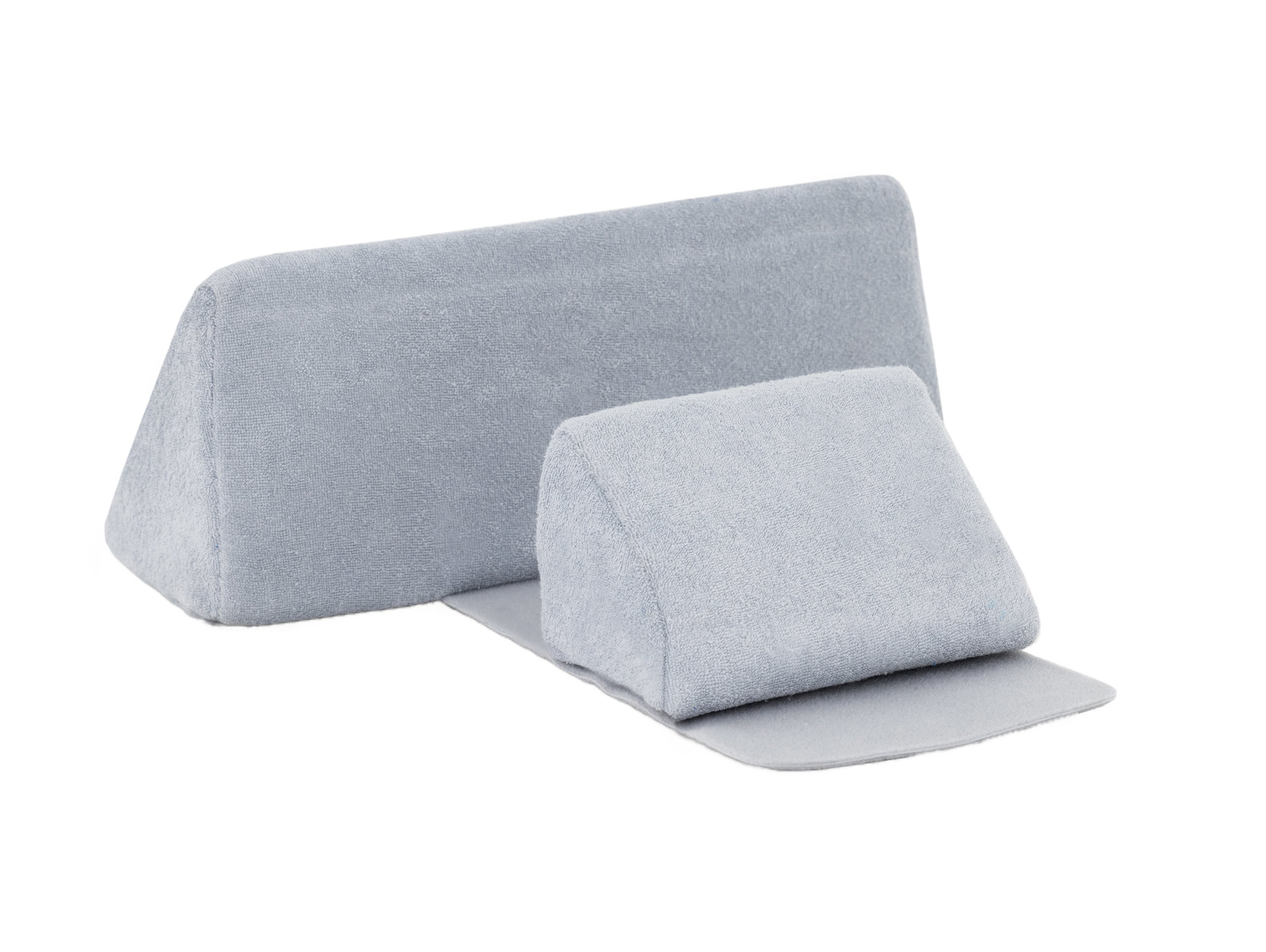 Innovative design based on two differently sized wedges and a wraparound strap. Soft wedges protect the child from uncontrolled movement while lying on the side. The smaller wedge can be freely attached anywhere, so the product “grows” with the child.