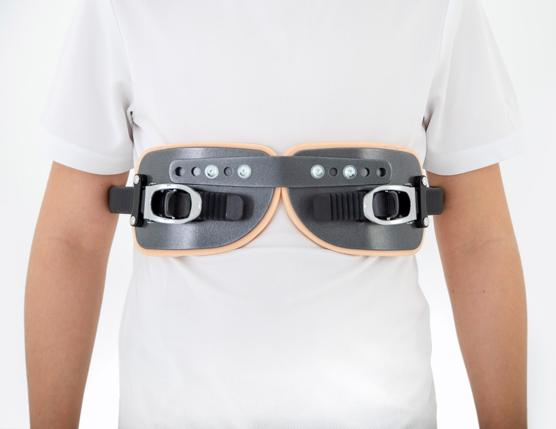 Les coussinets en aluminium sont fabriqués en aluminium léger de haute qualité 6061 T6, qui est utilisé dans l’aéronautique et garantit la meilleure stabilisation du marché. La surface interne des coussinets est recouverte d’une mousse médicale spéciale qui assure le confort des proéminences osseuses. Notre attelle thoracique en entonnoir doit être appliquée pendant l’adolescence, avant la maturité squelettique, lorsque les os sont capables de se former. Grâce au système innovant CALIPER BUCKLE, notre attelle EXCAVATUM assure une compression antérieure et postérieure (AP) qui, avec le temps, remodèle les os et les cartilages et les replace en position physiologique.