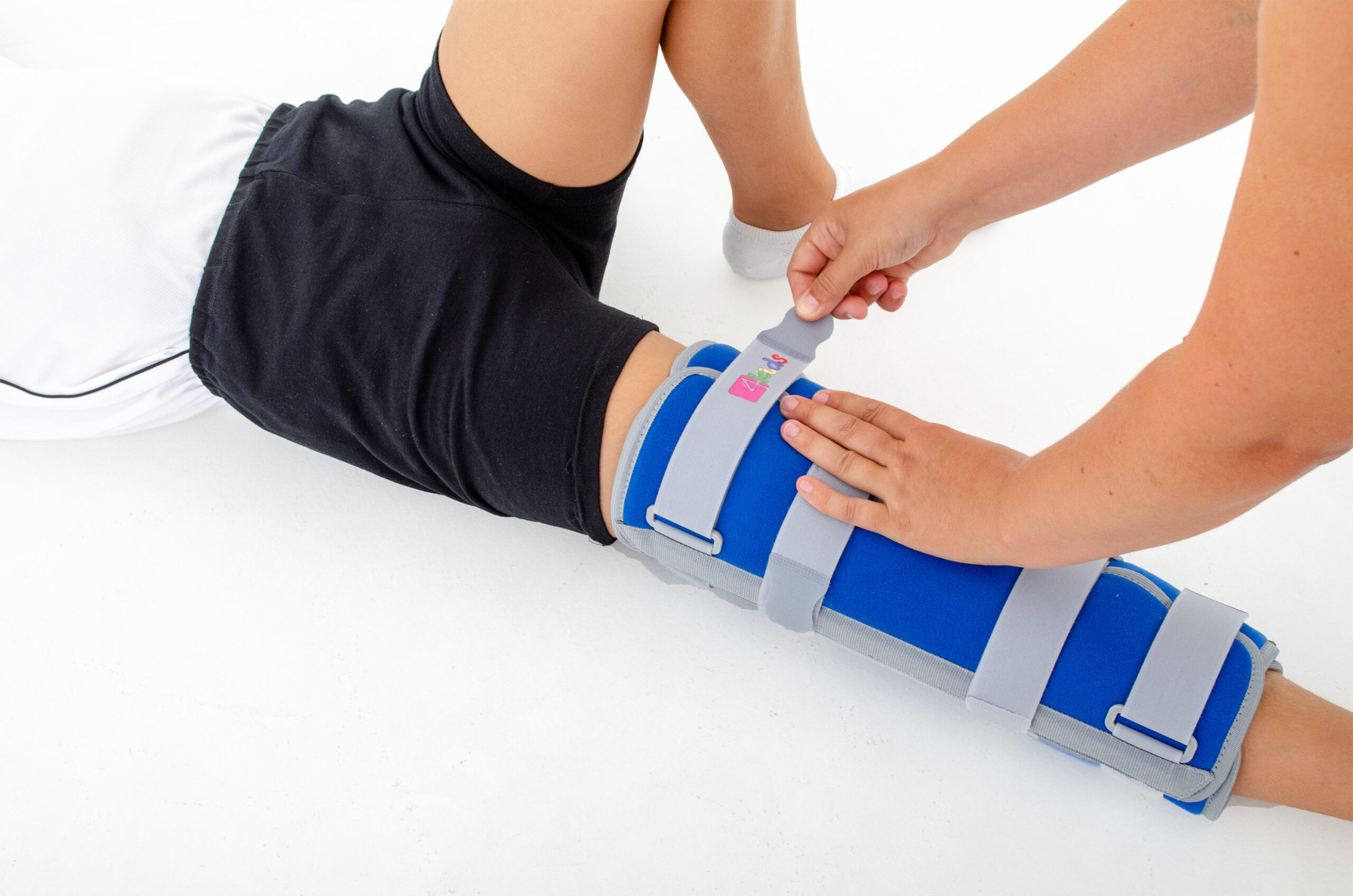 В этом случае колено необходимо иммобилизовать с помощью профессионального детского иммобилайзера нижних конечностей AM-TUD-KD.