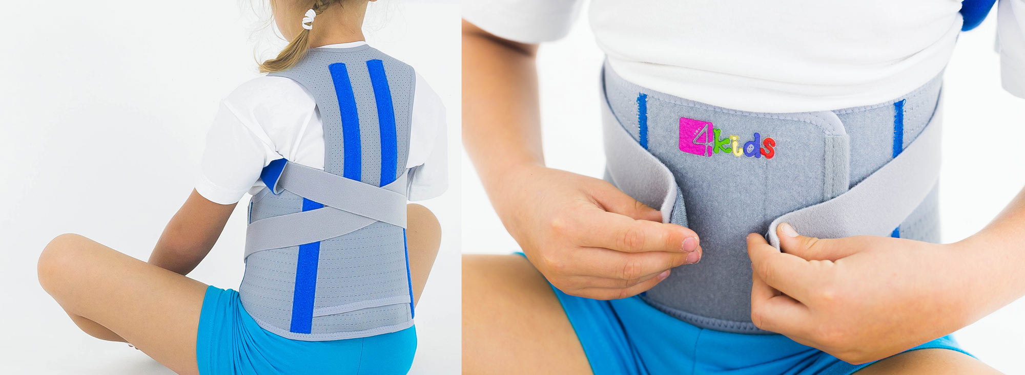 L’orthèse AM-WSP-06 se compose de deux parties : la ceinture abdominale et un cadre. Le cadre est équipé de plaques d’acier au profil anatomique, couvrant toute la section sacro-lombaire et la poitrine, stabilisant les vertèbres et soulageant la pression sur les structures vertébrales. Les coussinets supplémentaires de l’orthèse agissent comme un redresseur, resserrant les omoplates et forçant l’enfant à maintenir une posture corporelle correcte.