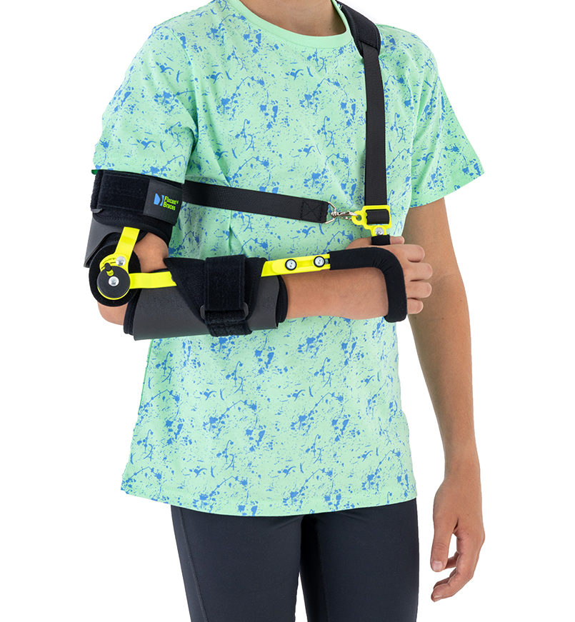 PEDIATRIC ELBOW ORTHOSIS WITH ROM ADJUSTMENT AND HAND SUPPORT